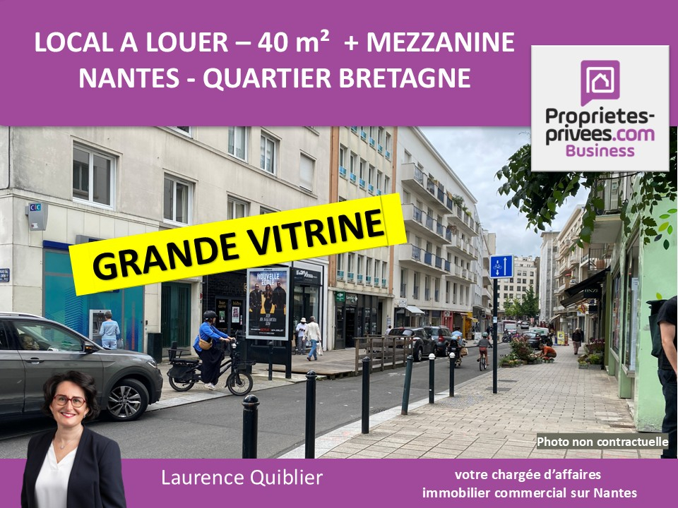 Laurence QUIBLIER vous propose à NANTES HYPER-CENTRE, proche Place Bretagne, la location de ce local commercial de 40 m² + 32 m² de mezzanine. Sur cet axe très passant avec possibilité d'accès VL et places de stationnement, ce local bénéficie d'un linéaire vitrine d'angle de près de 9 mètres et d'une belle hauteur sous plafond en entrée et store banne électrique. Il dispose également d'une surface de vente de 40 m², une mezzanine de 32 m² et une réserve en sous-sol de 17 m². Equipé d'une climatisation réversible, cet emplacement offre des prestations haut-de-gamme avec parquet au sol et accès sécurisé, avec dépose minute possible. Toutes activités de commerce et services. Bail commercial, loyer attractif 1880 euros /mois sans TVA. Honoraires locataire 5641.25 euros HT en plus, hors rédaction de bail. Pour visiter et vous accompagner dans votre projet contactez Laurence QUIBLIER au 06..81.78.46.21 ou par courriel à l.quiblier@proprietes-privees.com. Cette présente annonce a été rédigée sous la responsabilité éditoriale de Laurence QUIBLIER agissant en tant que Chargée d'affaires indépendante auprès de la SAS PROPRIETES PRIVEES. Mandat réf : 373122. En tant que professionnelle, je vous conseille et sécurise votre projet d'installation. SAS PROPRIETES PRIVEES - ZAC du chêne ferré - 44 allée des cinq continents 44120 VERTOU, Carte professionnelle CPI 4401 2016 000 010 388 CCI Nantes-Saint Nazaire. RCS NANTES 487 624 777 Laurence QUIBLIER (EI) Agent Commercial - Numéro RSAC : - .