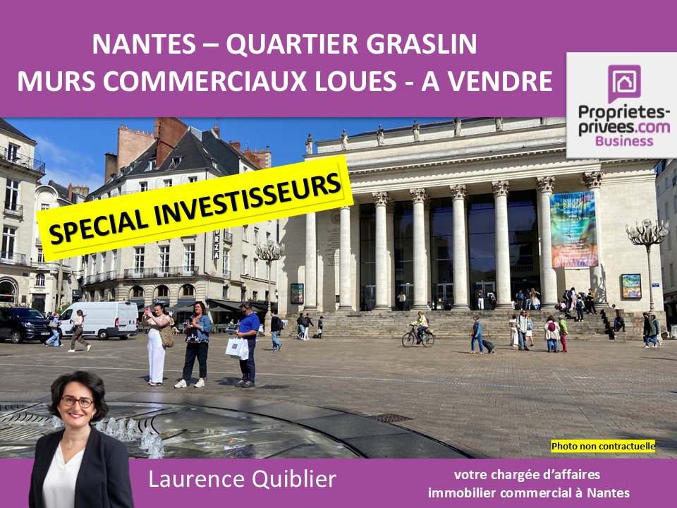 Laurence QUIBLIER vous propose à NANTES CENTRE VILLE, QUARTIER GRASLIN - VOLTAIRE, à proximité immédiate des transports et des commerces, sur la Ligne Verte du Voyage à Nantes, ces murs commerciaux occupés de 100 m². Les locataires en place bénéficient d'une belle clientèle fidèle de prestations de service. Bail commercial notarié de 2022. Revenus annuels supérieurs à 17000 euros HC, indexation ILC, taxes foncières à la charge des locataires. Prix de vente 300.000 euros net vendeur, honoraires 7 % HT à la charge de l'acquéreur soit 25200 euros TTC. Les informations sur les risques auxquels ce bien est exposé sont disponibles sur le site Géorisques : www. georisques.gouv.fr. Pour visiter et vous accompagner dans votre projet contactez Laurence QUIBLIER au 06..81.78.46.21 ou par courriel à l.quiblier@proprietes-privees.com. Cette présente annonce a été rédigée sous la responsabilité éditoriale de Laurence QUIBLIER agissant en tant que Chargée d'affaires indépendante auprès de la SAS PROPRIETES PRIVEES. Mandat réf : 432639. En tant que professionnelle, je vous conseille et sécurise votre projet d'installation. SAS PROPRIETES PRIVEES - ZAC du chêne ferré - 44 allée des cinq continents 44120 VERTOU, Carte professionnelle CPI 4401 2016 000 010 388 CCI Nantes-Saint Nazaire. RCS NANTES 487 624 777 (8.40 % honoraires TTC à la charge de l'acquéreur.) Laurence QUIBLIER (EI) Agent Commercial - Numéro RSAC : - .
