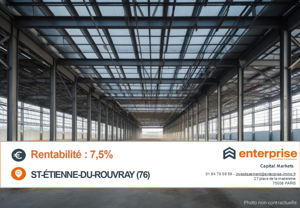 Enterprise Immobilier a le plaisir de vous présenter une super opportunité d'investissement sur la ville de Saint-Étienne-du-Rouvray ! Il s'agit d'un bâtiment d'activités loué à une société nationale dans le cadre d'un bail commercial de 9 années. La société est implantée dans le cadre d'un fort développement et est présente depuis plus de 10 années. Le plus : Un très bel emplacement accessible facilement Volume d'investissement : 1.500.000 € net vendeur Rentabilité : 7,5 % Honoraires de négociation : à la charge de l'acquéreur #investissement #immobilierdentreprise #murscommerciaux #rentabilité #realestate #opportunité #enterpriseimmobilier Prestations : Bon état.