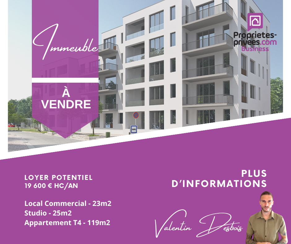 Pierrick VAILLANT, au 0602164798 , vous propose à la vente ce bel immeuble situé au bord de la place Nicolas Selle, avec une vue directe sur le bassin Bérigny. Celui-ci a été entièrement rénové avec goût et peut très rapidement recevoir votre activité de commerce. De plus, un espace privé est à votre disposition sur les étages supérieurs. Le bien se compose de la manière suivante : - Au rez-de-chaussée : entrée sur surface commerciale avec briques et solives apparentes de16.50 M² . - Au premier étage : un palier dessert une pièce de 12 M². - Au deuxième étage : un palier dessert une salle de douche et un WC indépendant pour 11M² l'ensemble. - Au dernier étage : une chambre mansardée de 9M² habitables. L'immeuble est édifié sur une cave accessible par trappe de visite, est desservi en eau, électricité et gaz. L'eau chaude sanitaire est produite par un cumulus électrique. Pour visiter et vous accompagner dans votre projet, contactez Pierrick VAILLANT, au 0602164798 ou, par courriel à p.vaillant@proprietes-privees.com Selon l'article L.561.5 du Code Monétaire et Financier, pour l'organisation de la visite, la présentation d'une pièce d'identité vous sera demandée. Cette annonce a été rédigée sous la responsabilité éditoriale de Pierrick VAILLANT agissant sous le statut d'agent commercial immatriculé au RSAC le havre 428794622 auprès de SAS PROPRIETES PRIVEES, au capital de 44 920 euros, ZAC LE CHÊNE FERRÉ - 44 ALLÉE DES CINQ CONTINENTS 44120 VERTOU ; SIRET 487 624 777 00040, RCS Nantes. Carte Professionnelle Transactions sur immeubles et fonds de commerce (T) et Gestion immobilière (G) n°CPI 4401 2016 000 010 388 délivrée par la CCI Nantes - Saint Nazaire. Compte séquestre n°30932508467 BPA SAINT-SEBASTIEN-SUR-LOIRE (44230). Garantie GALIAN-SMABTP - 89 rue de la Boétie, 75008 Paris - n°28137 J pour 2 000 000 euros pour T et 120 000 euros pour G. Assurance responsabilité civile professionnelle par GALIAN-SMABTP n° de police 28137.J Mandat réf : 407742 ? Le professionnel sécurise votre projet immobilier. Eric PITOY (EI) Agent Commercial - Numéro RSAC : - .