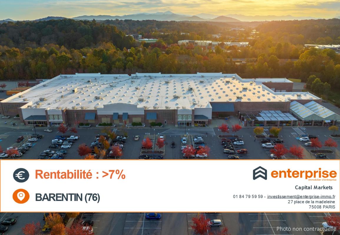 Enterprise Immobilier a le plaisir de vous faire part d'une excellente opportunité d'investissement. Il s'agit d'un Retail-Park en pleine propriété sur un emplacement n°1 au sein d'une zone commerciale très dynamique. L'actif est loué par des locataires en succursales de premier ordre. Le plus : des locataires solides sur un emplacement n°1 ! Volume d'investissement : 3.000.000 € Rentabilité : 8 % Honoraires de négociation : à la charge de l'acquéreur #investissement #immobilierdentreprise #murscommerciaux #rentabilité #realestate #opportunité #enterpriseimmobilier #Reims Prestations : Bon état